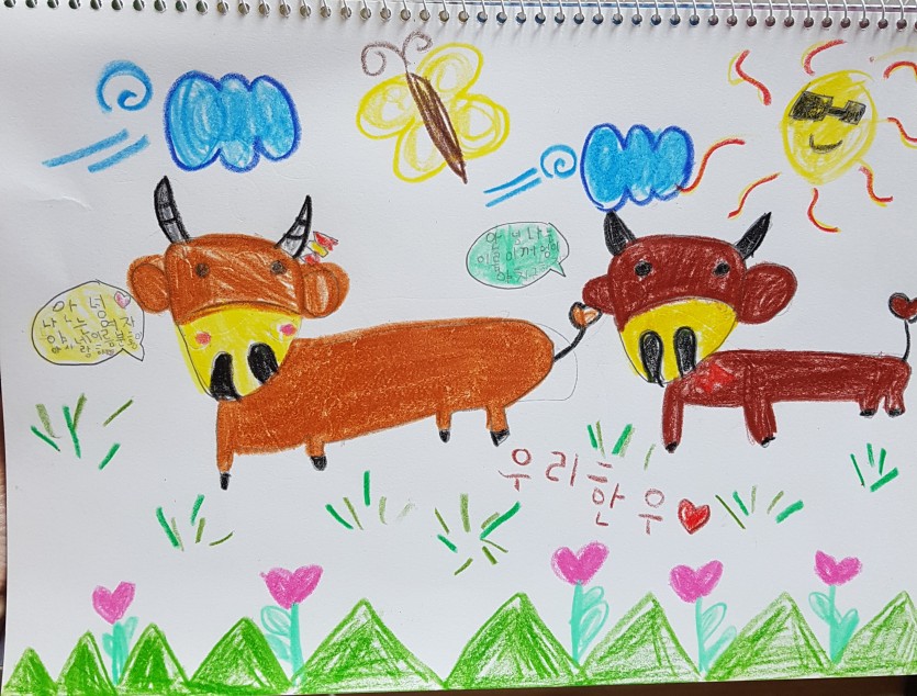 앞에있는 암소의 이름은 분홍이 뒤어있는 소는 숫소로 꺼멍이^^