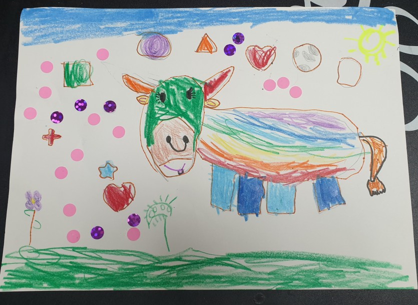 한우를 보자마자 귀엽다면서 쓱쓱 그려낸 그림입니다.