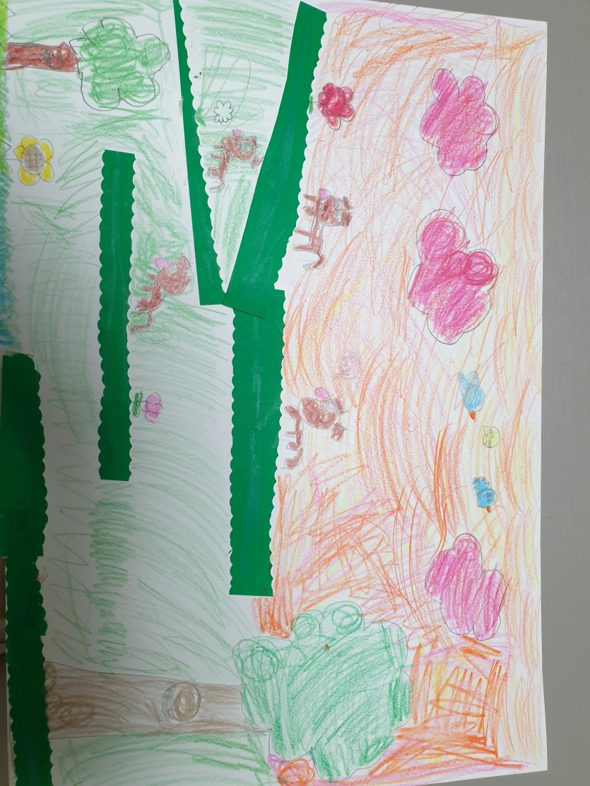 하늘은 노을이 져서 붉은색으로 표현했습니다