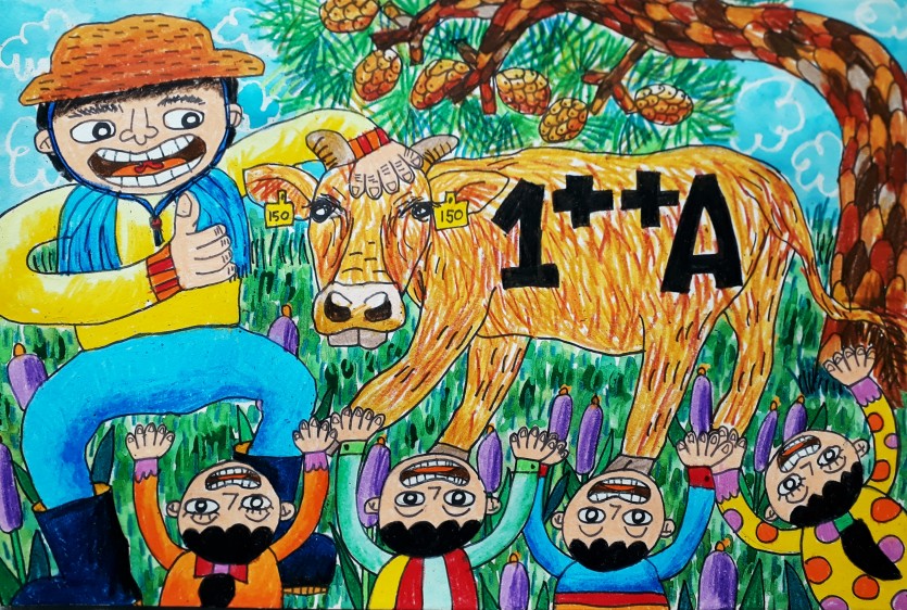 건강한 한우는 털이 윤기가 나고 다리가 튼튼하며 귀에는 한우 표시가 있다고 설명해주고 계세요