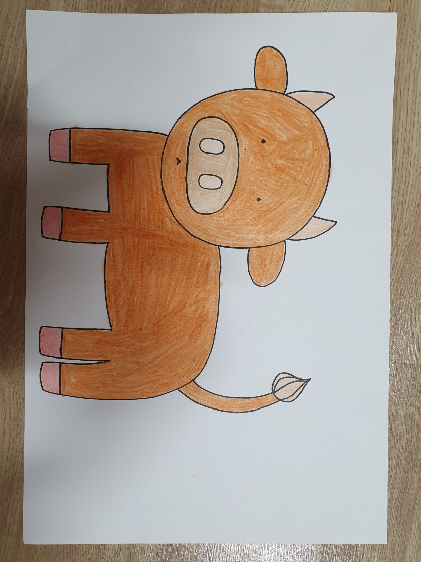 우리 생활에서 고급 한우를 먹을 수 있게 해주는 고마운 소의 귀여운 캐릭터를 잘 살려서 그렸습니다.