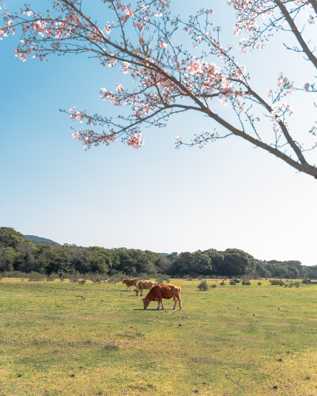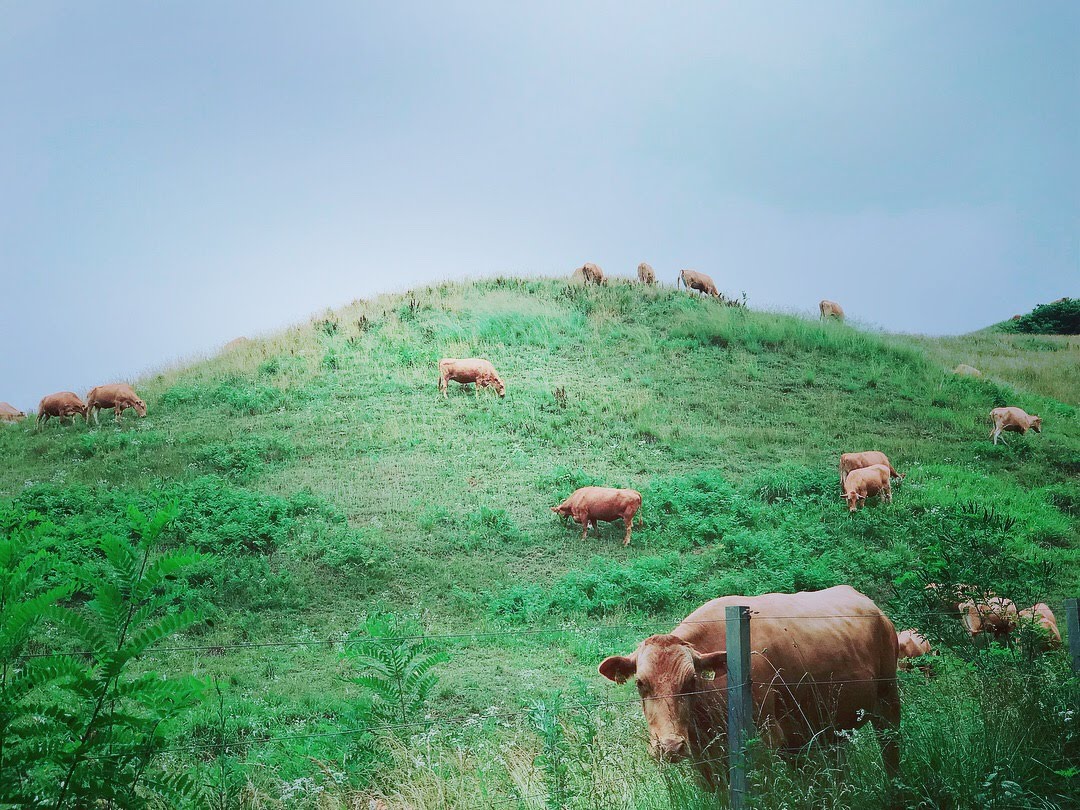 제주도 중산간에서 한가롭게 풀을 뜯고 있는 소떼