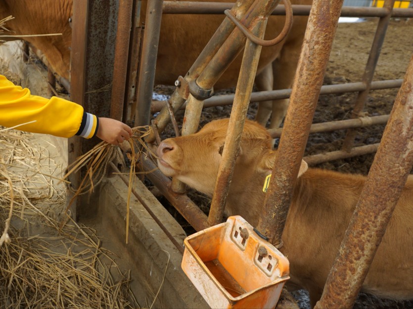 잘 숙성된 짚을 주며 "잘 먹고 쑥쑥 자라야해."라고 이야기해줍니다. 우리 나라에서 제대로 된 먹이를 먹으며 잘 큰 한우, 어릴 때부터 직접 보며 건강한 소에 대한 개념을 익혀갑니다.