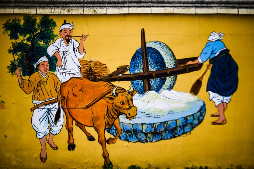 전통농경의 모습을 그림으로 표현한 것입니다.