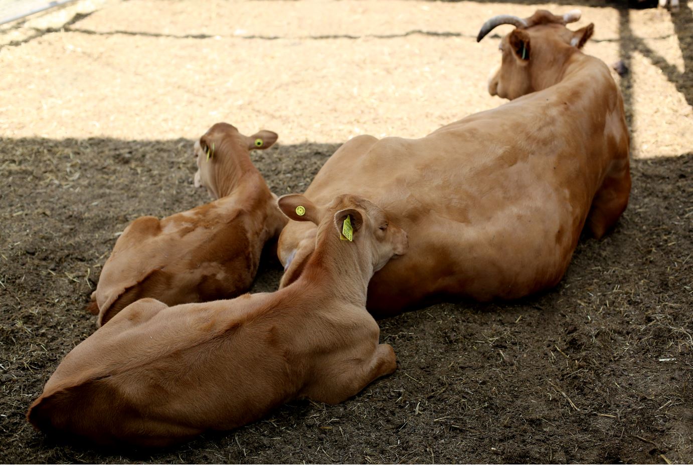 소 농장의 한 단면이다. 태어 날 때부터 약하게 태어난 어린 송아지가 엄마 품을 찾아 파고드는 장면이다. 엄마소는 어린 송아지를 볼 때마다 마음이 애잔하고 아프다. 농장주인은 이런 모정을 잘 알기에 어린 송아지에게 고운 옷을 해 입혔다.