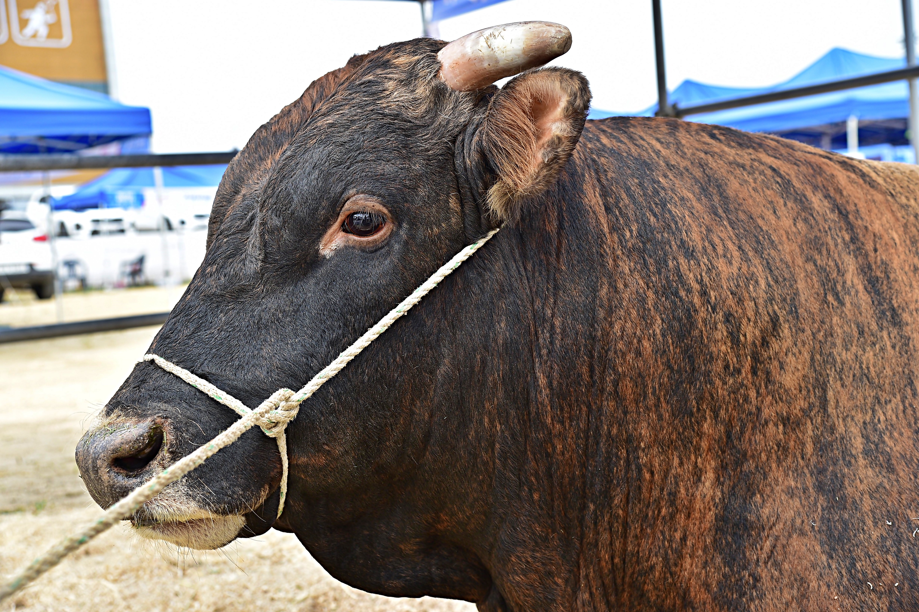 알게모르게 유독 사람을 닮은 한우의 모습이다.  어두운 뒷배경 덕분에 이 한우의 고귀함은 배가 된다.