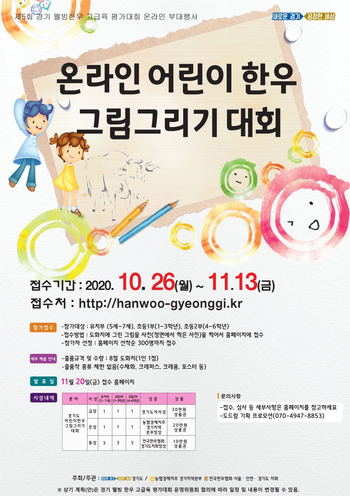 전국 온라인 어린이한우 그림그리기대회 금상 1 1 1 경기도지사상 30만원 상당의 상품권