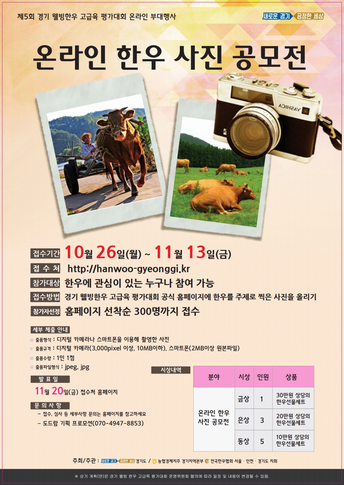 입선 작품은 경기도청 북부청사 경기천년길 갤러리에 전시 및 향후 경기 한우 홍보에 활용 예정